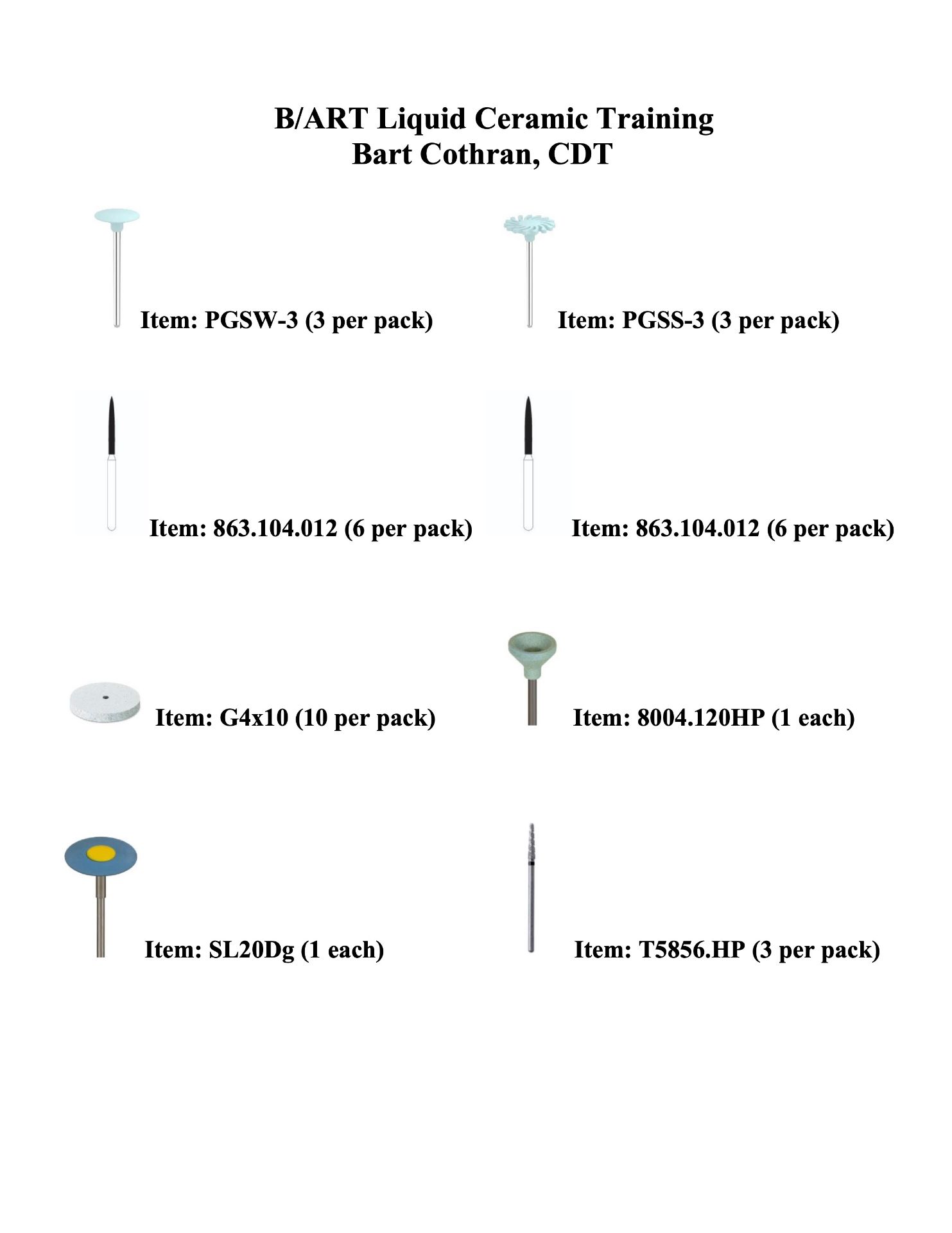 B/ART Training - 1 pack each item